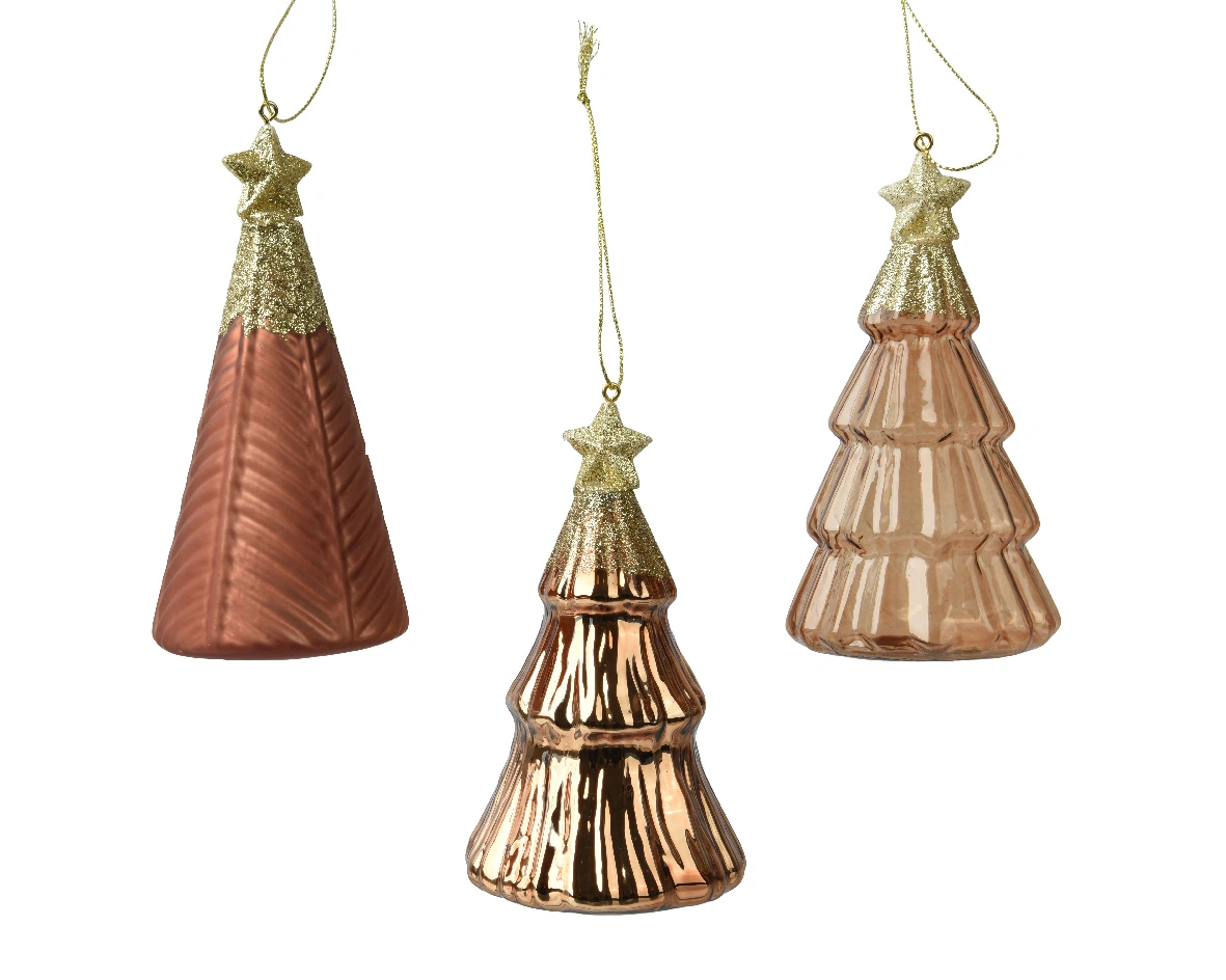 ΓΥΑΛΙΝΟ ΣΤΟΛΙΔΙ ΔΕΝΤΡΟ ΜΕ ΑΣΤΕΡΙ ΣΤΗΝ ΚΟΡΥΦΗ, ΣΕ ΚΑΦΕ ΜΠΡΟΝΖΕ ΓΚΛΙΤΕΡ- ΣΕΤ 3 ΤΕΜΑΧΙΑ