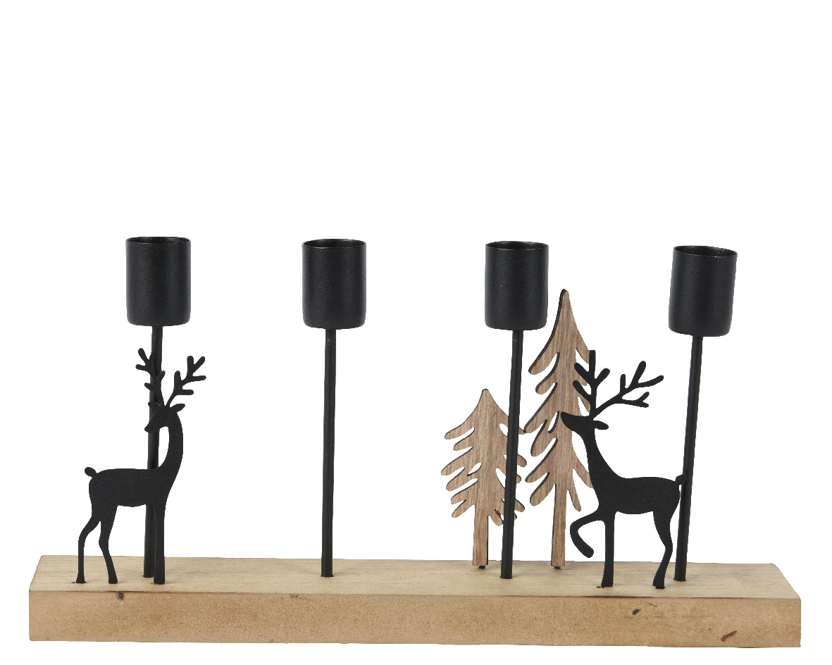 Επιτραπέζιο κηροπήγιο 13,5 εκ. με ξύλο και σίδερο τεσσάρων κεριών,