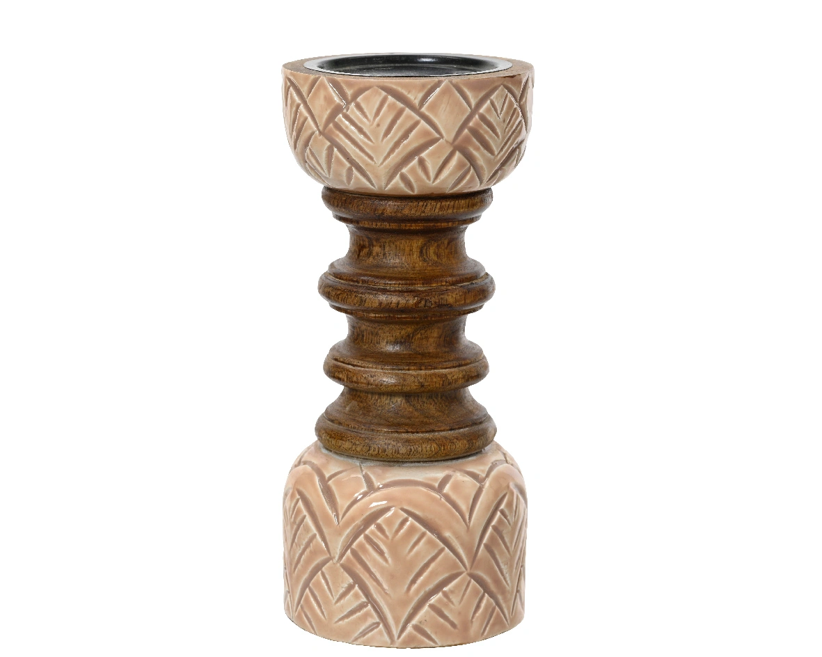 Κηροπήγιο με σμάλτο και ξύλο μάνγκο, σε 2 μεγέθοι