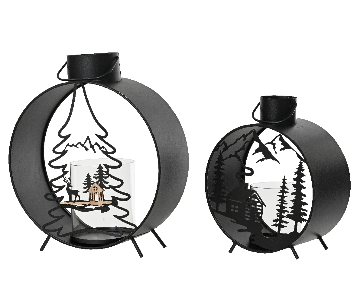 Φανάρι επιτραπέζιο απο σίδερο με λαμπόγυαλο σετ μικρό 23εκ. και μεγάλο 29εκ.