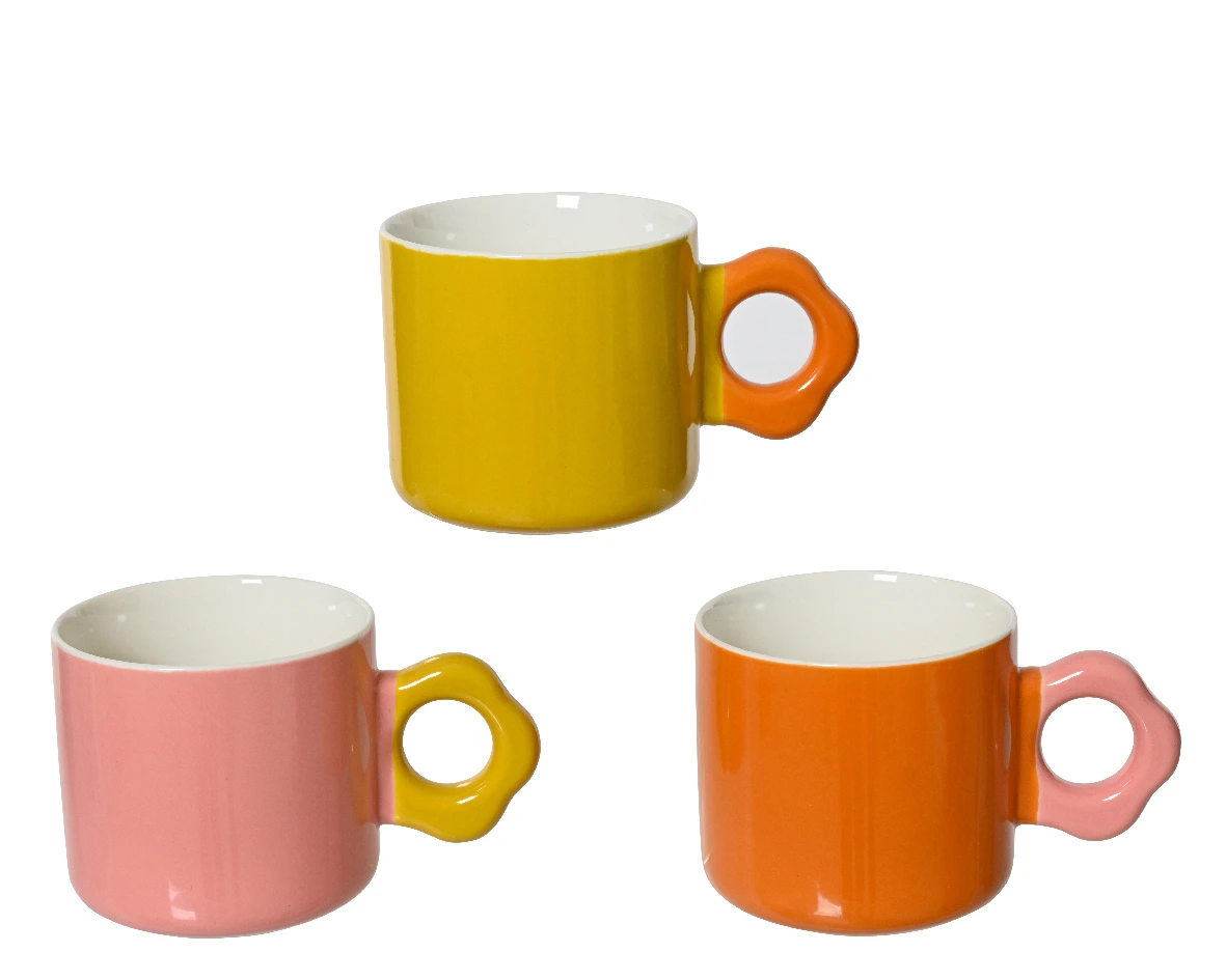 Mug porcelain round shiny with color glaze with flower ear 3col ass L.13cm x W.8.5cm x H.8cm