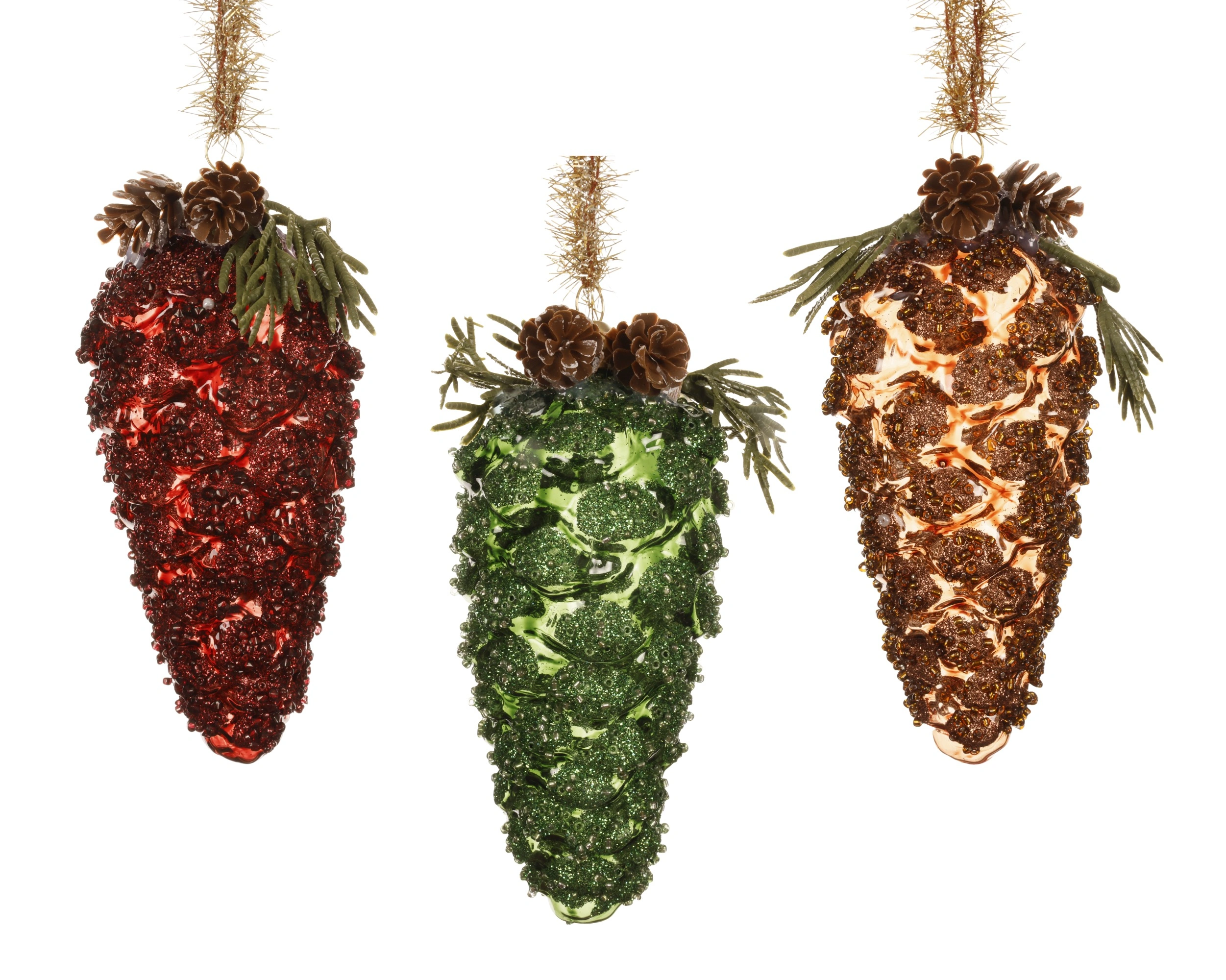 Στολίδι κουκουνάρι ΓΥΑΛΙΝΟ σετ 3 τεμάχια