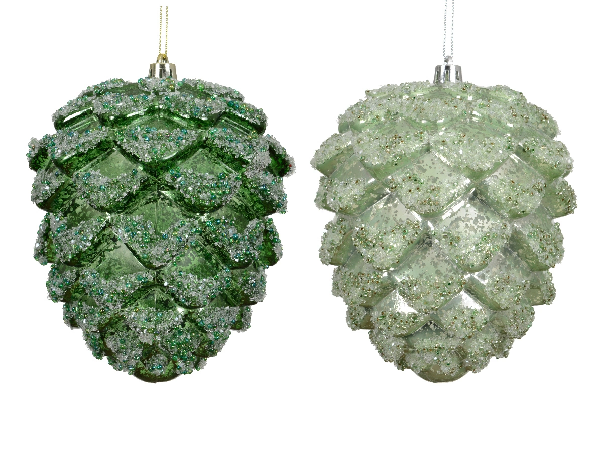 | Χριστουγεννιάτικο μεγάλο κρεμαστό στολίδι κουκουνάρι με γκλίτερ σε 2 χρώματα απο πολυστερίνη |