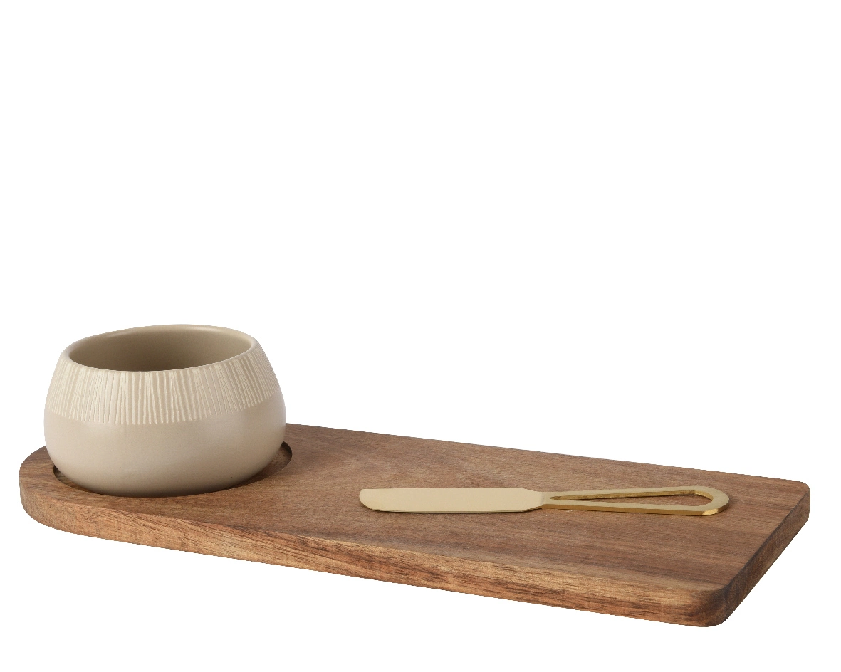 Tapas set acaciawood oval matt with stripe pattern with chesse knife L.12cm x W.32cm x H.6cm
